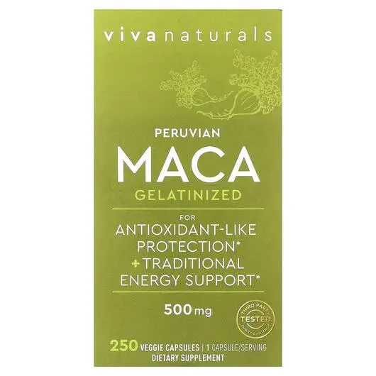 Viva Naturals, Мака, Peruvian Maca Gelatinized 500 mg, 250 капсул