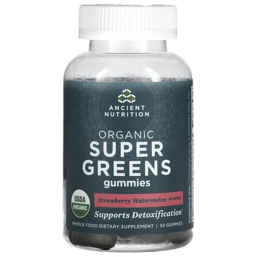 Супергринс Organic Super Greens Gummies Strawberry Watermelon 50 таблеток, Ancient Nutrition