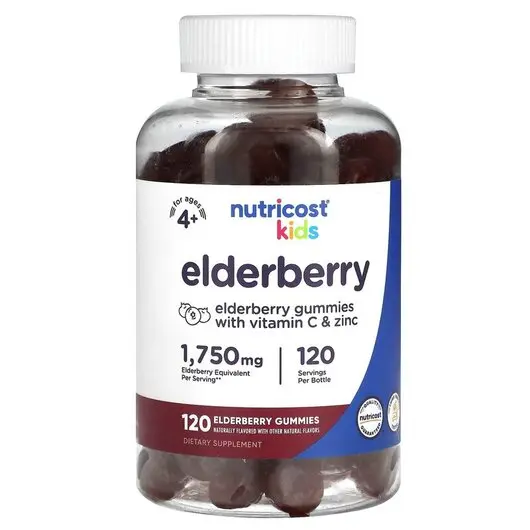 Черная Бузина Kids Elderberry Ages 4+ 1750 mg 120 таблеток, Nutricost