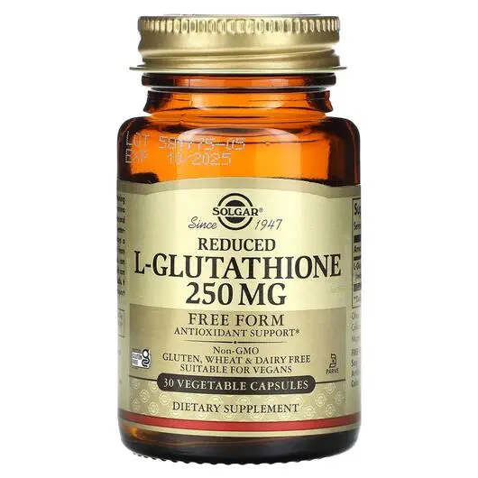 Solgar, L-Глутатион, Reduced L-Glutathione 250 mg, 30 капсул