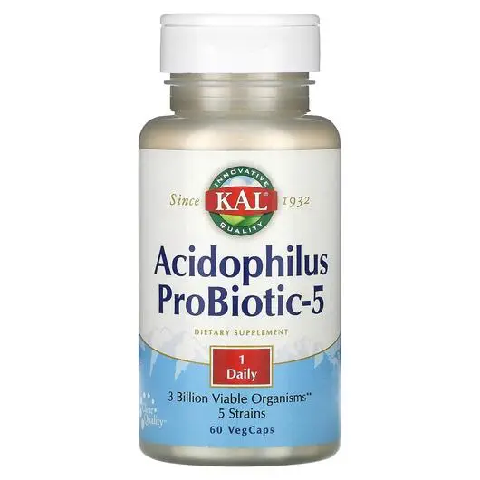 KAL Acidophilus ProBiotic-5 предназначен для обеспечения питательной поддержки для создания и поддержания благоприятной кишечной флоры. Пять пробиотических штаммов присутствуют в лиофилизированном состоянии. Каждая капсула содержит более 3 миллиардов жизнеспособных микроорганизмов.