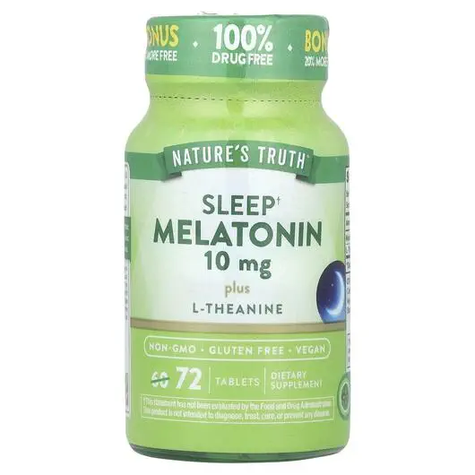 Мелатонин, Melatonin Plus L-Theanine 10 mg, 72 таблеток