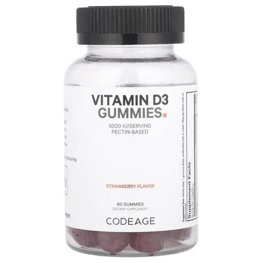 Vitamin D3 Gummies Non-GMO Pectin Based Strawberry, Витамин D3, 60 таблеток
