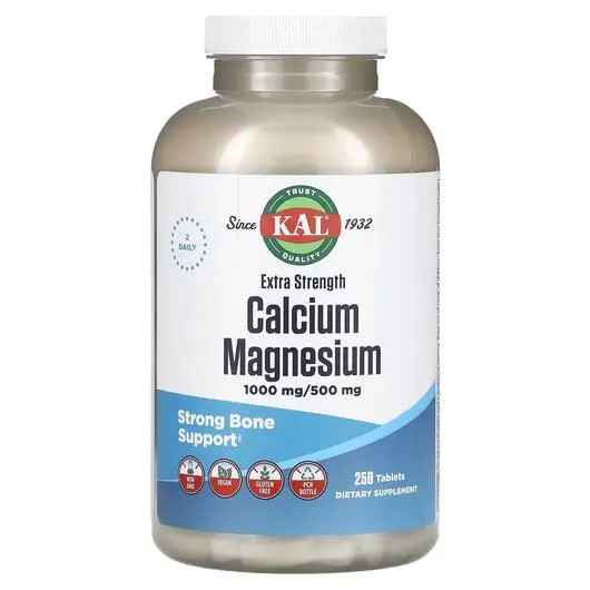 KAL, Кальций, Calcium Magnesium Extra Strength, 250 таблеток