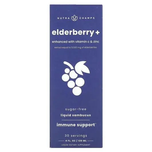 Elderberry+ Enhanced with Vitamin C & Zinc Natural Berry, Витамин C, 120 мл