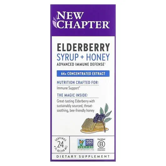 New Chapter, Сироп из Бузины, Elderberry Syrup + Honey, 118 мл