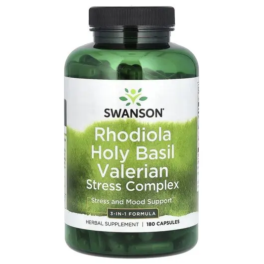 Rhodiola Holy Basil Valerian Stress Complex, Поддержка стресса, 180 капсул