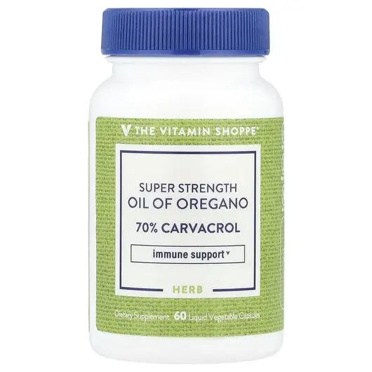 Получите дозу укрепляющего иммунитета два раза в день с помощью капсул Super Strength Oil of Oregano торговой марки The Vitamin Shoppe. Каждая вегетарианская капсула содержит 45 мг дикого средиземноморского орегано, содержание карвакрола стандартизировано до 70%.