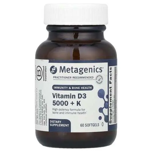 Metagenics, Витамины D3 + K2, Vitamin D3 5000 + K, 60 капсул