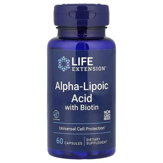 Антиоксидантные свойства альфа-липоевой кислоты, усиленные действием биотина. Капсулы для приема дважды в день для улучшения здоровья печени и нервной системы и защиты от окислительных реакций.