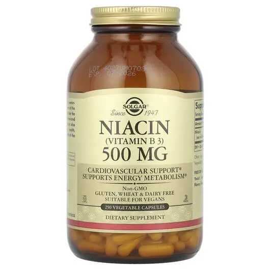 Ниацин (витамин B3) — это водорастворимый витамин, который входит в состав B-комплекса. Он необходим для превращения углеводов и белков в энергию. Кроме того, ниацин поддерживает сердечно-сосудистую систему, кровообращение и здоровье нервной системы.