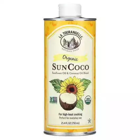 La Tourangelle Organic SunCoco Oil combines the functionality of organic high-oleic sunflower oil with the rich and buttery texture of organic refined coconut oil. With a neutral flavor, it's perfect for everyday high temperature cooking: frying, roasting, sauting, baking, and more.