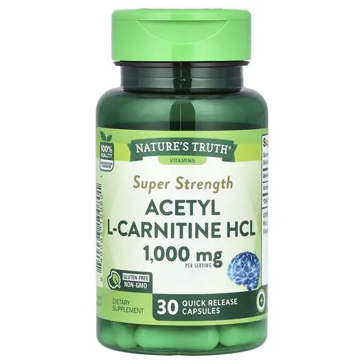Acetyl L-Carnitine HCL Super Strength 1000 mg, Ацетилкарнитин, 30 капсул