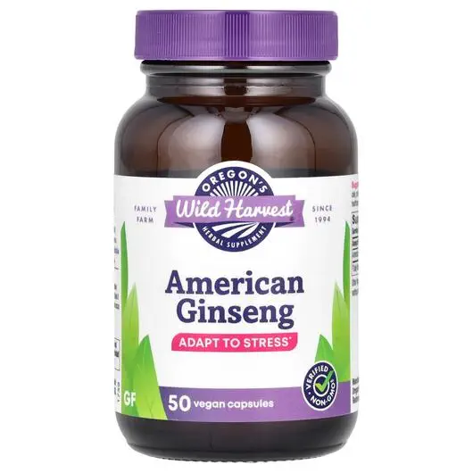 Женьшень American Ginseng 50 капсул, Oregon's Wild Harvest
