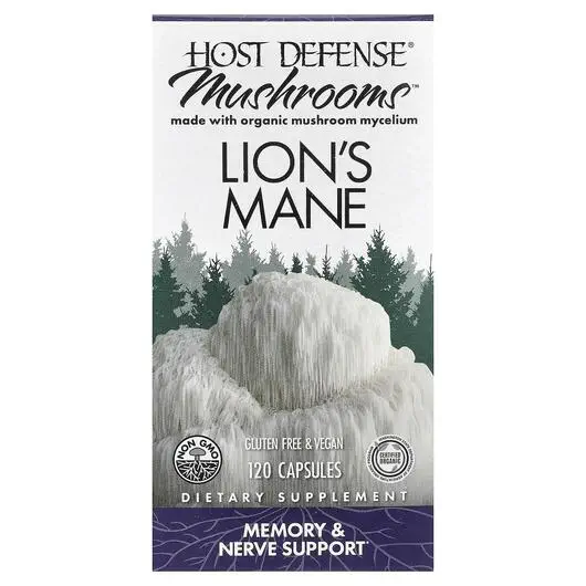 Host Defense Mushrooms, Грибы Львиная грива, Lion's Mane, 120 капсул