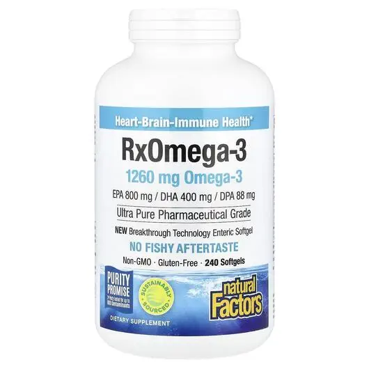 Natural Factors, ЕПА 400 мг ДГЭА 200 мг, RxOmega-3, 240 капсул