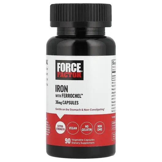 Force Factor, Железо, Iron with Ferrochel 36 mg, 90 капсул