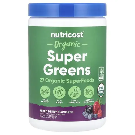 Nutricost, Супергринс, Organic Super Greens Mixed Berry, 330 г