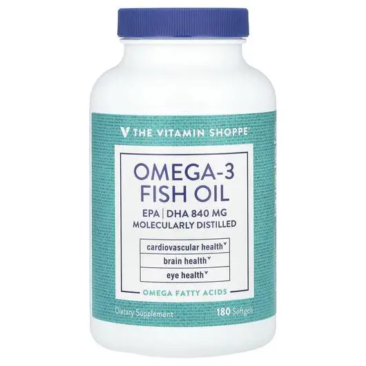 TheVitaminShoppe, Омега 3, Omega-3 Fish Oil EPA/DHA 840 mg, 180 капсул