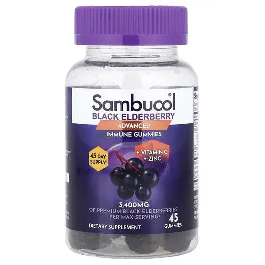 Черная Бузина, Black Elderberry Immune Gummies Advanced, 45 таблеток
