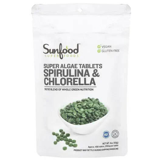 Хлорелла Spirulina & Chlorella Super Algae Tablets 250 mg 456 таблеток, Sunfood
