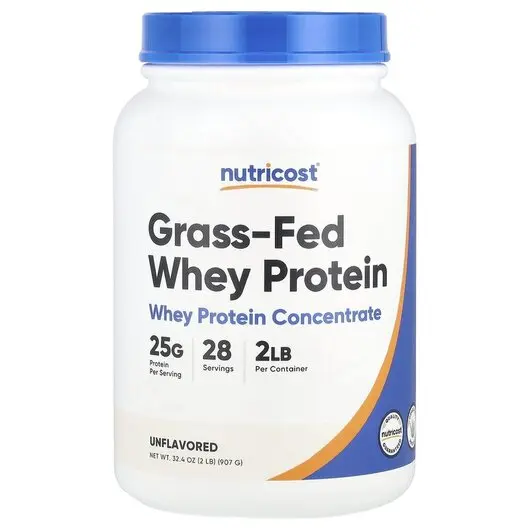 Nutricost, Протеин Изолят, Grass-Fed Whey Protein Unflavored, 907 г