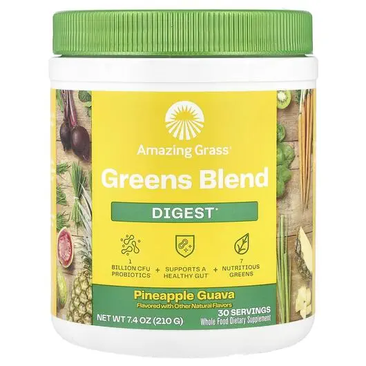 Amazing Grass, Ферменты, Greens Blend Digest Pineapple Guava, 210 г