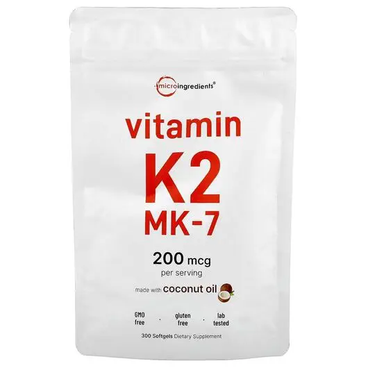 Micro Ingredients, Витамин K2, Vitamin K2 MK-7 200 mcg, 300 капсул