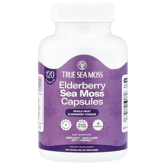 Ирландский морской мох, Sea Moss & Elderberry 1600 mg, 90 капсул