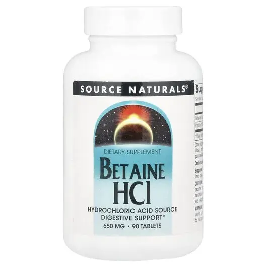 Source Naturals, Бетаин гидрохлорид, Betaine HCI 650 mg, 90 таблеток