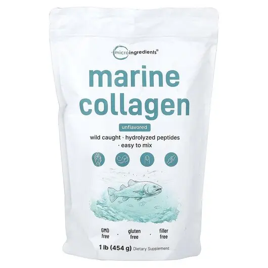 Компания Micro Ingredients предлагает 1 фунт пептидного порошка морского коллагена, 12 г чистого коллагена морской рыбы на порцию, созданного из высококачественного гидролизованного коллагена для эффективного усвоения, который питает волосы, кожу, ногти и суставы.