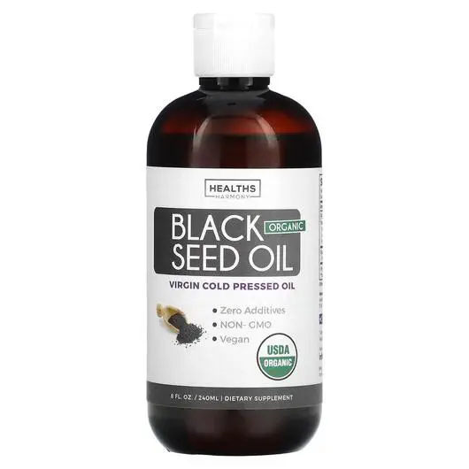 Healths Harmony, Черный тмин, Organic Black Seed Oil 4.6 g, 240 мл
