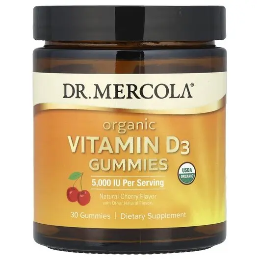Organic Vitamin D3 Gummies Natural Cherry 5000, Витамин D3, 30 таблеток