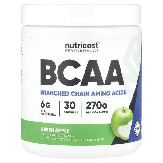 Nutricost, БЦАА, Performance BCAA Green Apple, 270 г