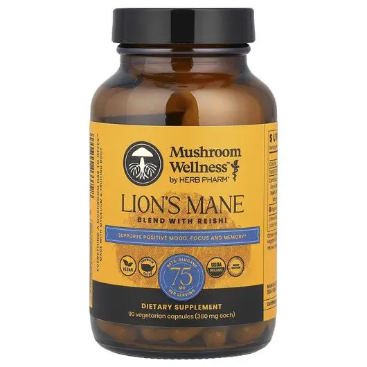 Mushroom Wellness Lion's Mane Blend With, Грибы Львиная грива, 90 капсул