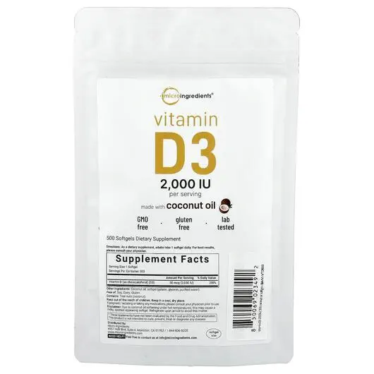 Micro Ingredients, Витамин D3, Vitamin D3 5000 IU, 500 капсул
