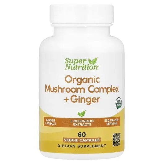 Super Nutrition, Грибы, Organic Mushroom Complex + Ginger, 60 капсул