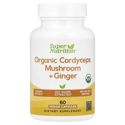 Super Nutrition Organic Cordyceps Mushroom + Ginger содержит 500 мг органического экстракта гриба кордицепса и 50 мг органического экстракта имбиря на порцию. Добавьте эту мощную травяную добавку в свой ежедневный рацион, чтобы поддержать здоровую иммунную систему.