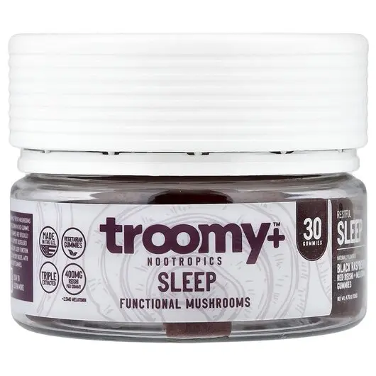 Содержит 400 мг грибов рейши и 2,5 мг мелатонина в каждой конфете. Снотворные жевательные конфеты Troomy специально разработаны для снижения уровня стресса и поддержания здорового сна. Получите необходимое вашему организму количество сна с помощью снотворных жевательных конфет Troomy.