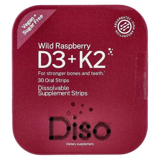 Diso, Витамины D3 + K2, Vitamin D3 + K2 Wild Raspberry, 30 таблеток