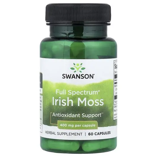 Ирландский мох Swanson — это растительный источник антиоксидантов, борющихся со свободными радикалами и поддерживающих иммунитет и функцию щитовидной железы. Ирландский мох — это разновидность красных морских водорослей, источник каррагинана, способствующего общему благополучию. Он также способствует здоровью волос и кожи и здоровому старению. Каждая порция содержит 400 мг ирландского мха в удобной форме капсул, благодаря чему вы получаете все полезные свойства без какого-либо привкуса.