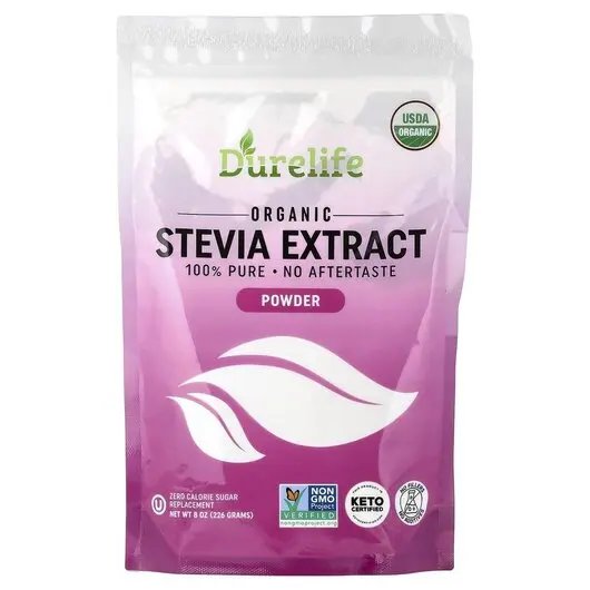 Ощутите природную сладость порошка стевии Durelife, идеального заменителя сахара для здорового образа жизни. Этот бескалорийный подсластитель растительного происхождения идеально подходит для тех, кто придерживается безглютеновой, веганской или кето-диеты. Изготовленный из 100% чистого экстракта стевии, сертифицированного Министерством сельского хозяйства США (USDA) как органический, без добавления наполнителей и добавок, порошок стевии Durelife идеально впишется в ваши рецепты и напитки, придавая им сладкий вкус без горького послевкусия. Он способствует контролю веса и является отличным выбором для диабетиков, позволяя вам наслаждаться сладким без чувства вины.