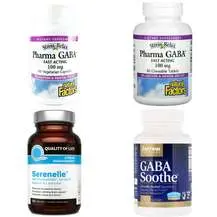 Продукт обычно содержит основное активное вещество гамма-аминомасляную кислоту (GABA), а также вспомогательные компоненты, обеспечивающие стабильность формы и повышающие эффективность усвоения. Обычно среди вспомогательных ингредиентов можно встретить: