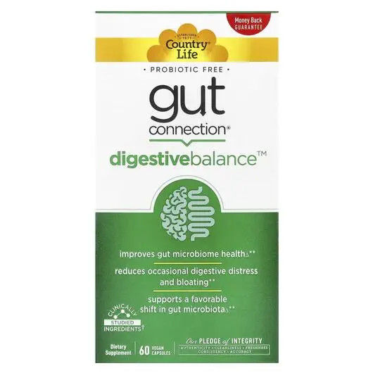 Звязок із кишківником Digestive Balance від Country Life розроблено спеціально та науково, щоб допомогти покращити здоров'я травної системи. Наші клінічно перевірені інгредієнти є «збалансованими всередині» для здоров'я травлення.