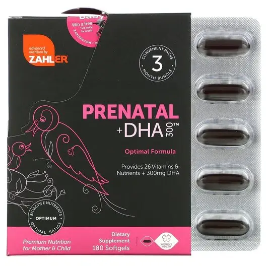 Добавка Prenatal + DHA від Zahler — це збалансований синергетичний засіб, який містить ретельно відібрану комбінацію поживних речовин, необхідних дитині, що розвивається, в оптимальному співвідношенні для засвоєння, метаболізму й безпеки.