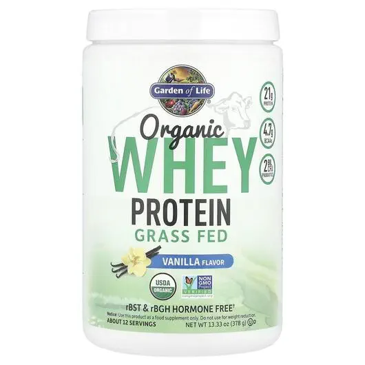 Organic Whey Protein Grass Fed Vanilla, Протеїн, 378 г