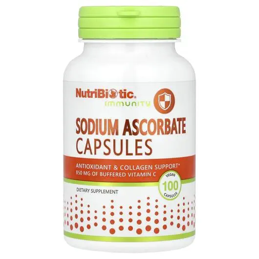 Прості і зручні капсулиКапсули NutriBiotic з аскорбатом натрію містять 850 мг 100 % вітаміну C фармацевтичного ступеня чистоти та 100 мг натрію в простій і зручній формі.Вітамін C і натрій — важливі поживні речовини, які допомагають підтримувати здоров'я організму. Вітамін C забезпечує антиоксидантний захист імунної системи, а також підтримує здоров'я кровоносних судин, тканин, хрящів, кісток, очей та інших систем органів. Крім того, він необхідний для біосинтезу колагену, l-карнітину та нейромедіаторів. Натрій — це електроліт, що допомагає підтримувати баланс води в клітинах і навколо них, контролювати стабільний артеріальний тиск, а також має важливе значення для роботи мязової і нервової систем. Завдяки комбінованій позитивній дії вітаміну С і натрію ця добавка важлива для загального здоров'я організму.Аскорбат натрію NutriBiotic виробляється шляхом розчинення L-аскорбінової кислоти в природному гідрокарбонаті натрію. Натрій у цьому продукті відрізняється від звичайних кухонних солей, оскільки він не поєднується з хлором. Аскорбат натрію NutriBiotic в капсулах ідеально підходить для людей, яким потрібна лужна (буферізована) форма вітаміну С. Показник кислотності або лужності (нейтральний рівень pH 7,0)