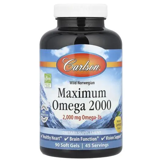Carlson, Maximum Omega 2000, Риб'ячий жир Омега-3 2000 мг, 90 капсул