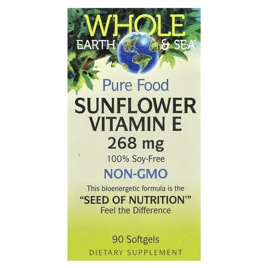 Whole Earth & Sea Sunflower Vitamin E 400, Вітамін E Токофероли, 90 капсул