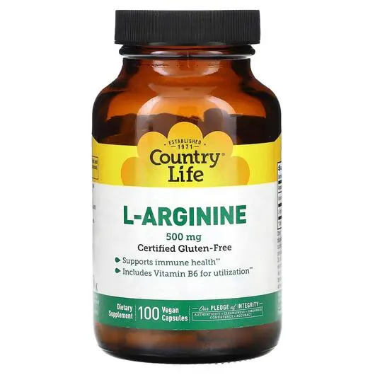 Country Life, L-Arginine Caps 500 mg, L-Аргінін, 100 капсул